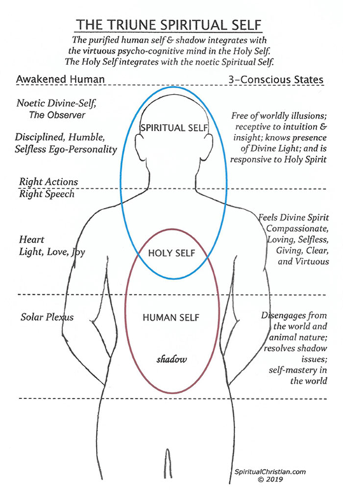 This three-stage transformational process is what Jesus meant when He said we must die and be reborn; the body-mind, the ego-mind, the dark emotions and the chattering-mind are minimized and managed so the true-Self can merge and become conscious and present. This is recognized and experienced in Stage 4 through contemplation in the stillness and silence of the Divine Presence.